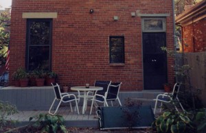 The fireplaces are two separate units that sit back to back. Brick was used to complement the house and provide color and texture to the exterior. The grade changes between the interior and exterior allowed us put the height of each fireplace at the right height for each area.