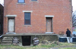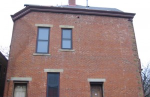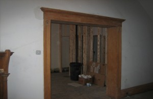 A new back porch was added to provide access to the yard. Rusticated, battered stone retaining walls were used to match the existing house foundation and make a smooth transition.