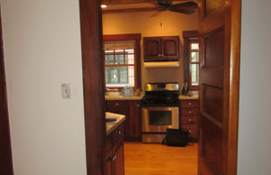 The back entrance addition gave an opportunity for a new entertaining porch that provides effortless access to the back yard. The new french doors also expand sunshine into the living room in the center of the house.