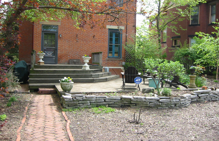 The covered porch adds a place to be out of the elements and strengthens the connection between house and garden. We replaced the seldom-used wood deck with a more appropriate brick terrace.