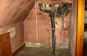 The old second floor bathroom was a great example of a poorly planned room. We were able to create two new bathrooms in the same amount of space.