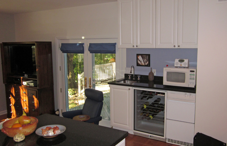 • Our clients had lived in their house for several years and were ready for a change. They loved their home and really didn’t need a drastic renovation – just a refinement of the space inside and a better connection to the backyard. We began by adding a screened porch and back hall. The new back hall connects the screened porch with the dining and family rooms and acts like a lantern to bring light into the center of the home. The kitchen space was reworked – with better cabinets, countertop workspace and lighting. The dining room was expanded to make it brighter, and details like the archway and built-ins were added to soften the space.
